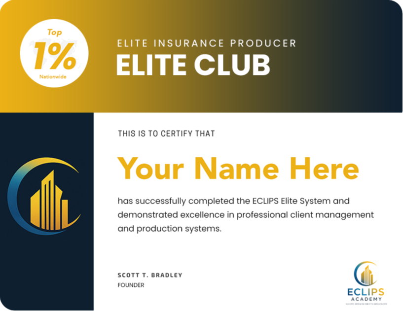 Trusted by producers at 10 of the 15 largest global brokers — and countless regional agencies. Designed for clarity, practicality, and confidence in every module. Built on the vision of Founder & Creator The ECLIPS Academy™ Team and led today by a dedicated leadership team committed to your success.